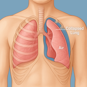 Pnömotoraks, akciğer ile göğüs duvarı arasındaki boşlukta hava birikmesi sonucu akciğerin sönmesidir. Halk arasında “akciğer sönmesi” olarak da bilinir. Ani göğüs ağrısı ve nefes darlığı en sık görülen belirtileridir. Pnömotoraks, kendiliğinden (spontan), travmaya bağlı veya altta yatan akciğer hastalıkları sonucu gelişebilir.